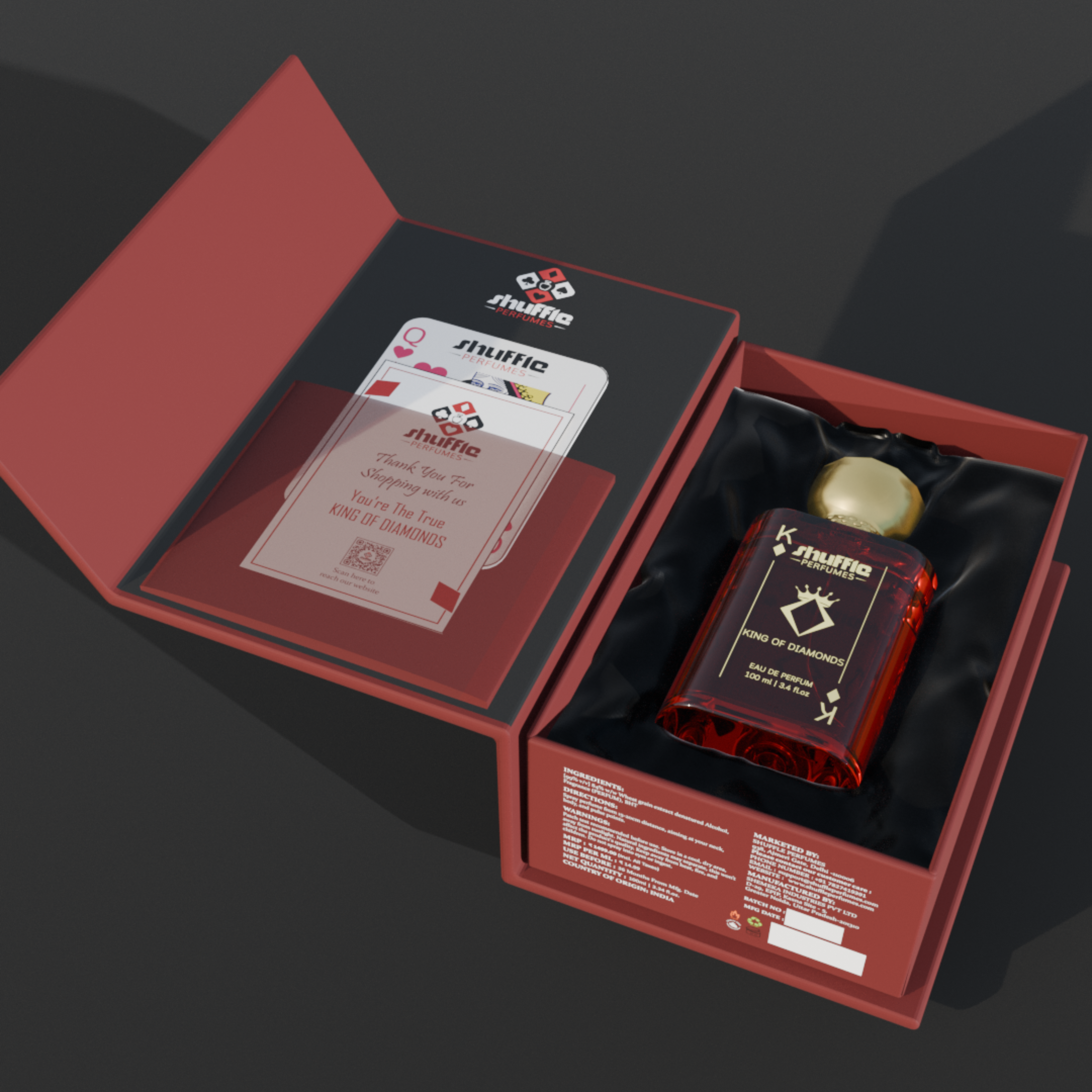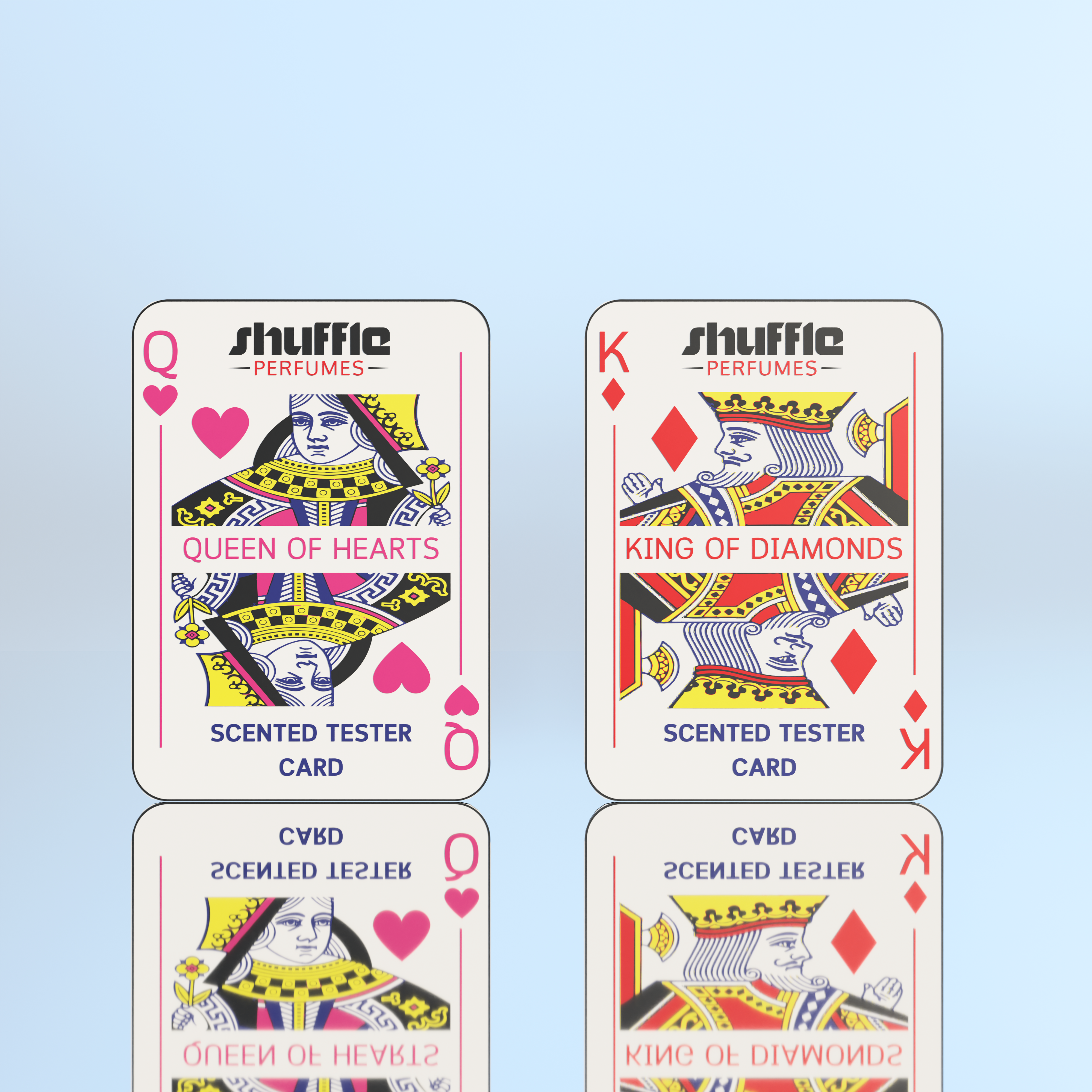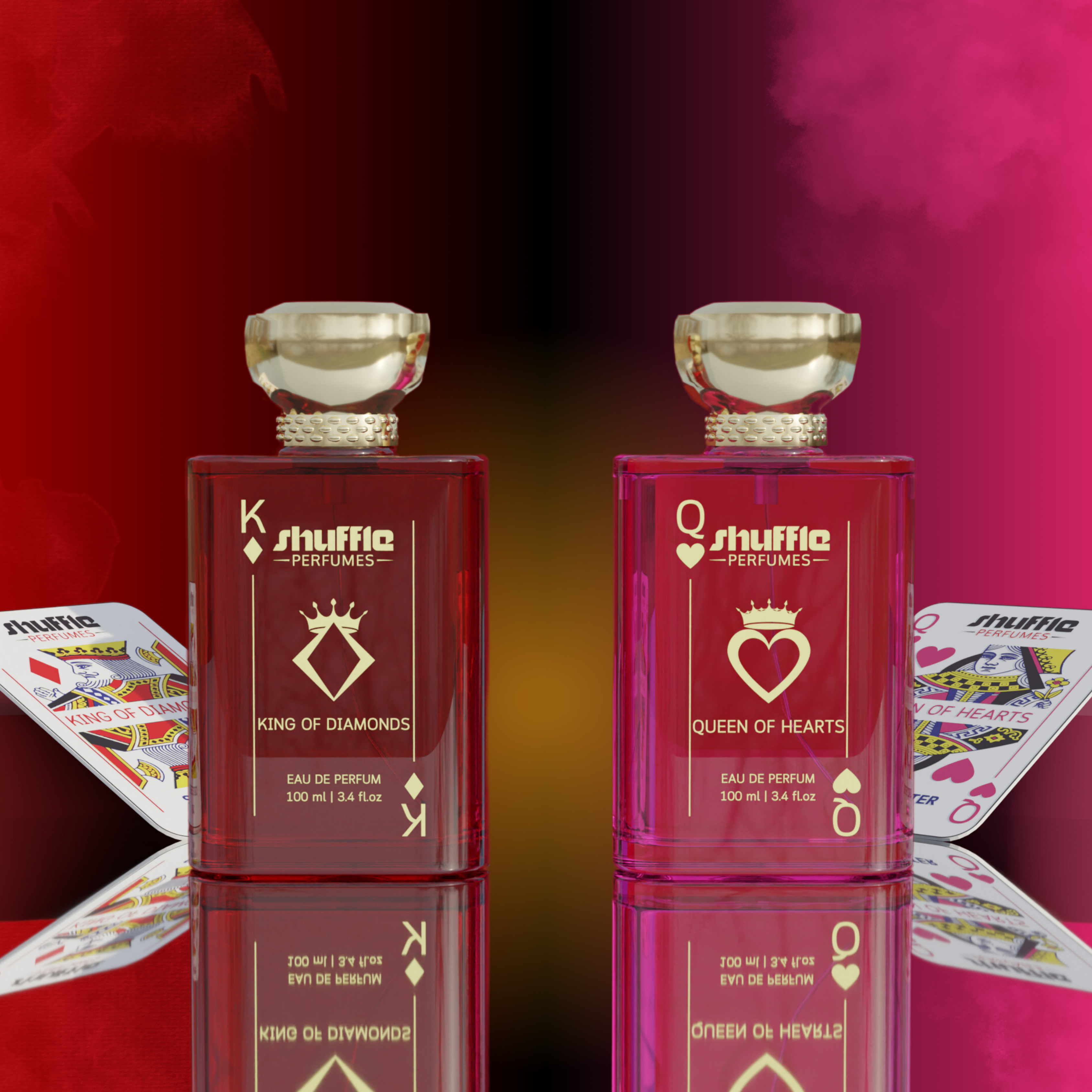 King of Diamonds and Queen of Hearts. Each card is included with the 100ml bottles of their counterpart fragrance.